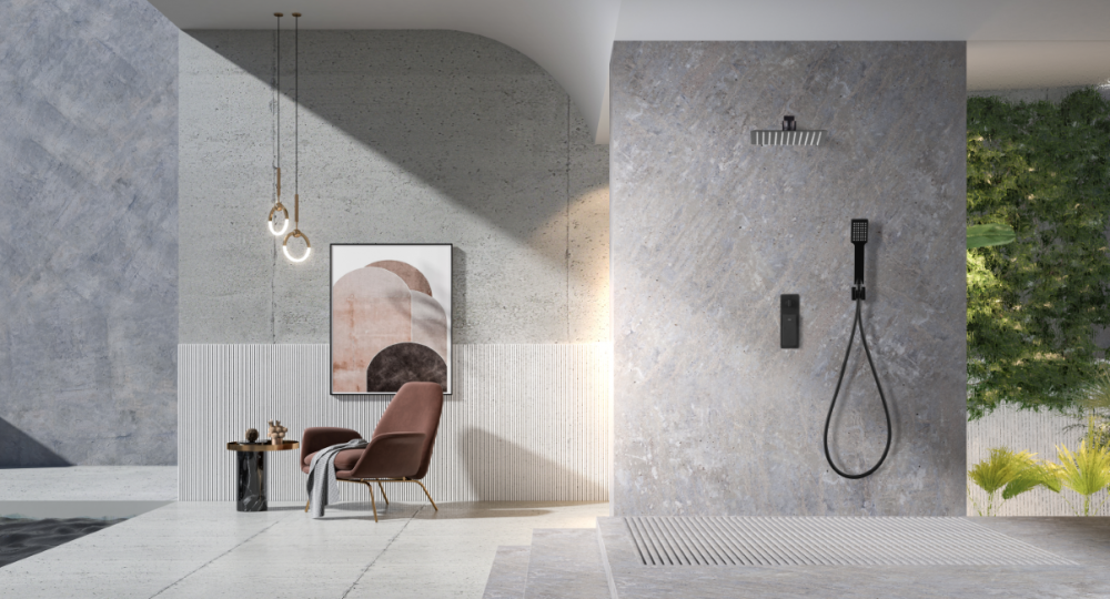 Fiyi matt fekete falsík előtti fejzuhanyos zuhany szett Kedvezményes ár:152.890-Ft/db