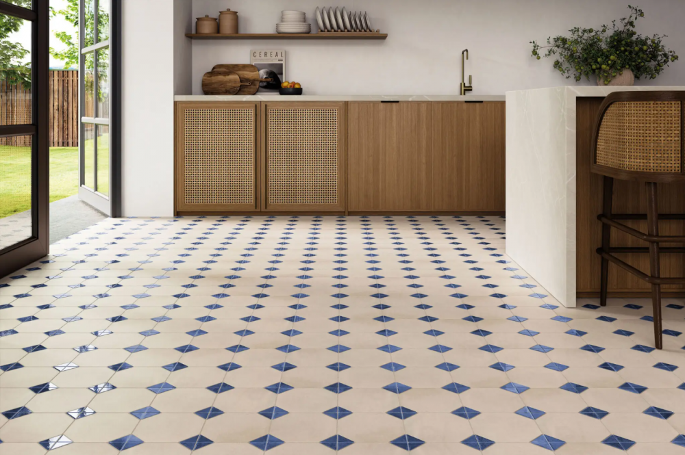 Jellemzők: #tört fehér padlólap kék fényes kockával#realonda dover padlólap#csempe.co#olasz fürdőszoba